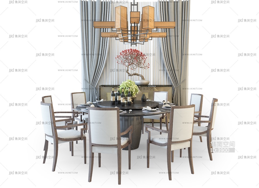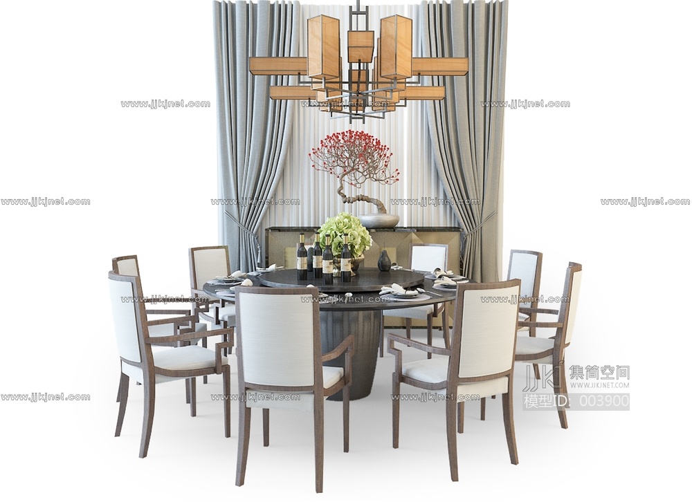 X03-0427中式餐桌椅组合 3d模型下载 [模型ID:3900]