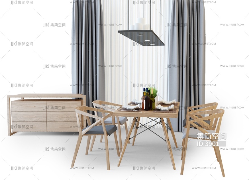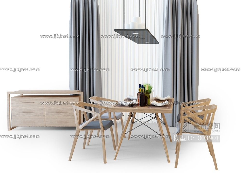 X04-0427现代中式餐桌椅组合 3d模型下载 [模型ID:3901]