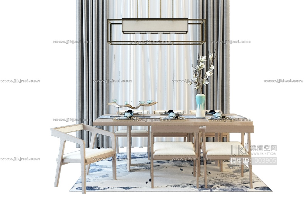 Z07-0427中式餐桌椅组合 3d模型下载 [模型ID:3905]