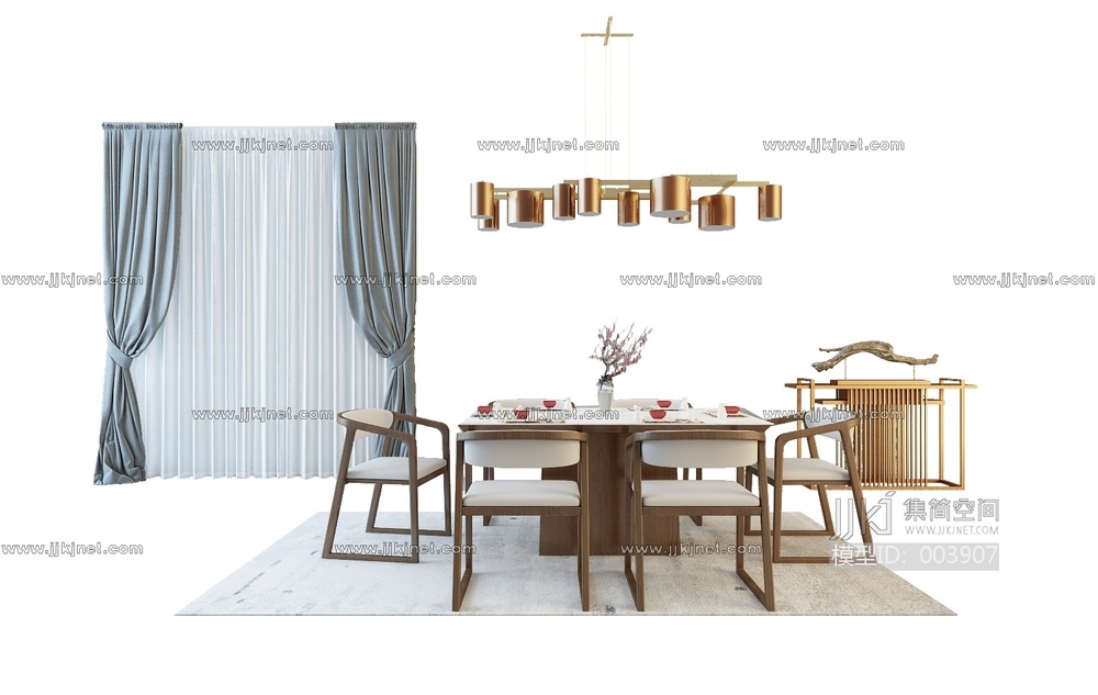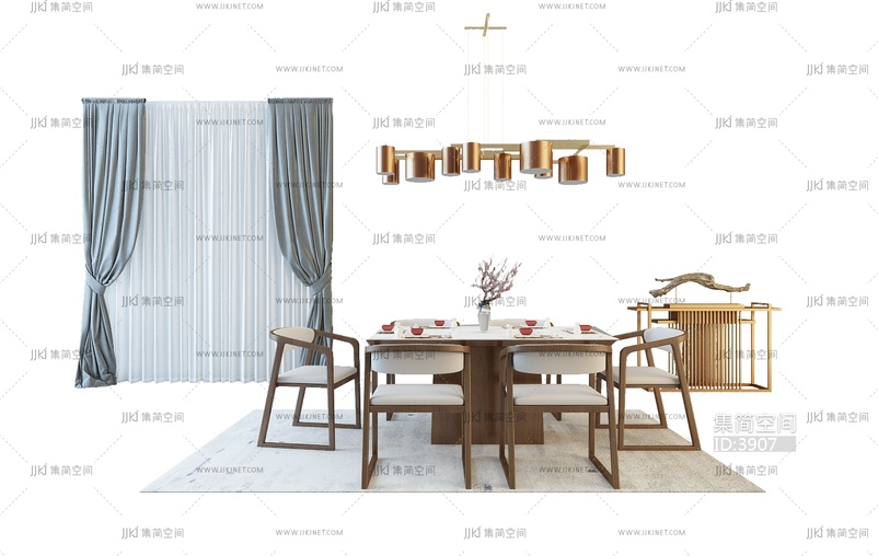 Z11-0427现代中式餐桌椅组合 3d模型下载 [模型ID:3907]