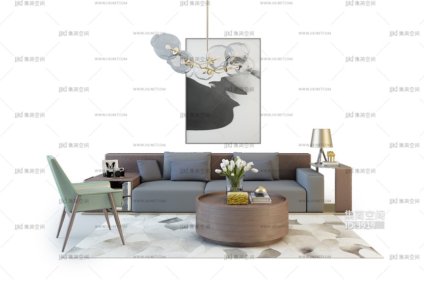 H11-0427现代沙发 3d模型下载 [模型ID:3919]