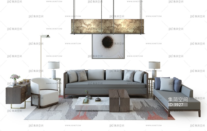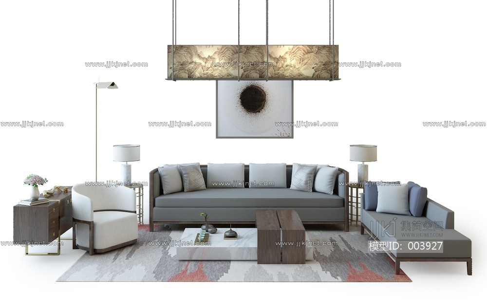 G09-0427现代中式沙发 3d模型下载 [模型ID:3927]