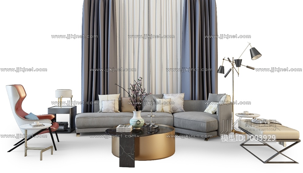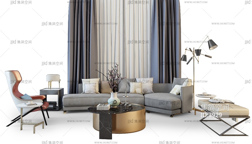 Z04-0427现代中式沙发组合 3d模型下载 [模型ID:3929]