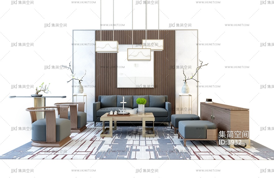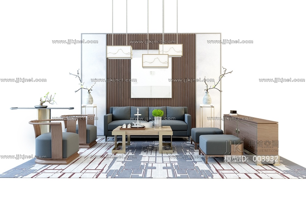 Z10-0427现代中式沙发组合 3d模型下载 [模型ID:3932]
