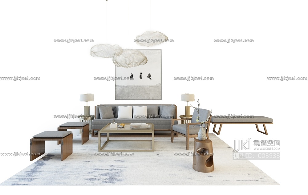 Z12-0427现代中式沙发组合 3d模型下载 [模型ID:3933]