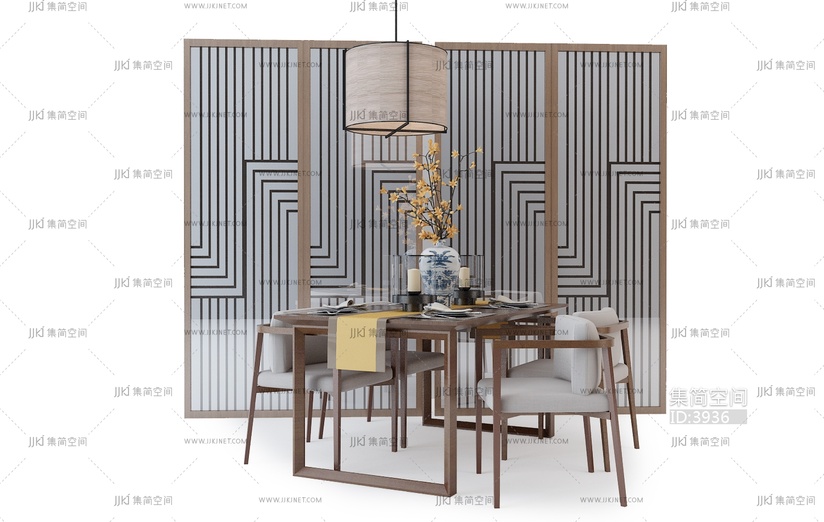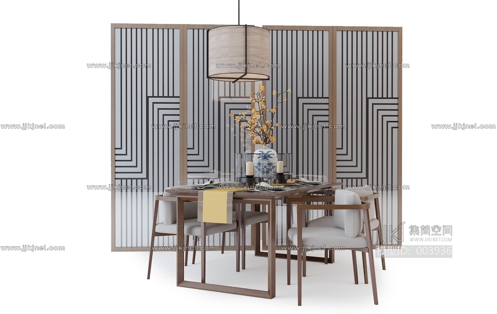 Z04-0608中式餐桌椅屏风组合 3d模型下载 [模型ID:3936]