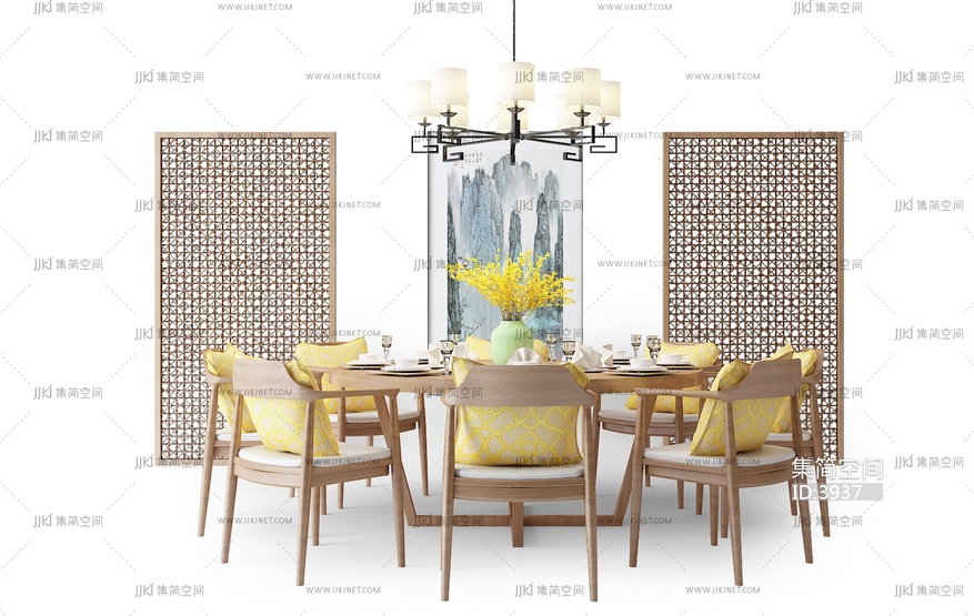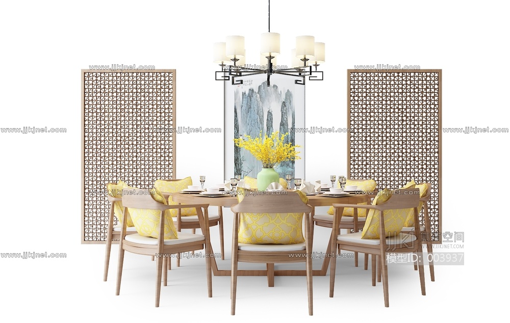 Z08-0608中式餐桌椅屏风组合 3d模型下载 [模型ID:3937]