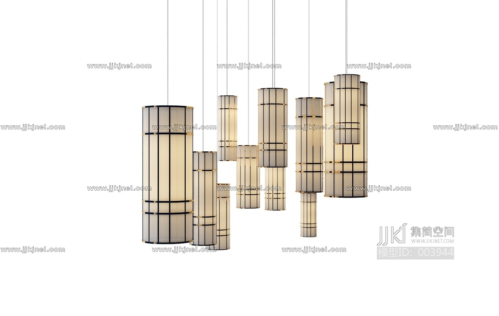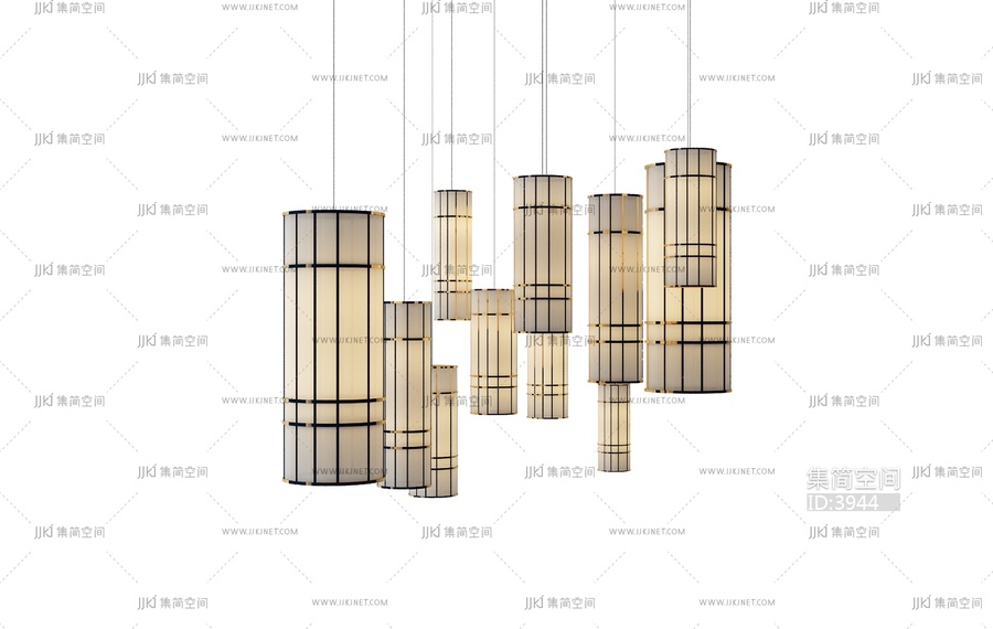 现代新中式艺术吊灯_竹子主题装饰吊灯3D模型3d模型下载