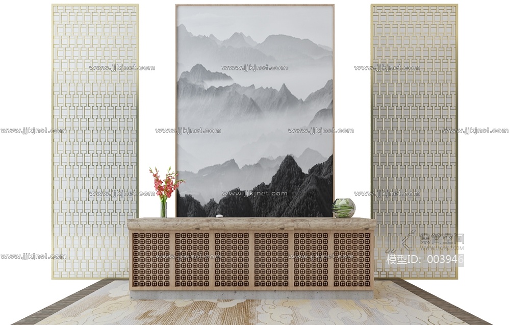 Z21-0608服务台屏风组合 3d模型下载 [模型ID:3946]