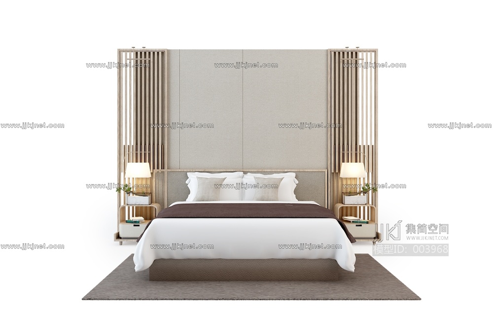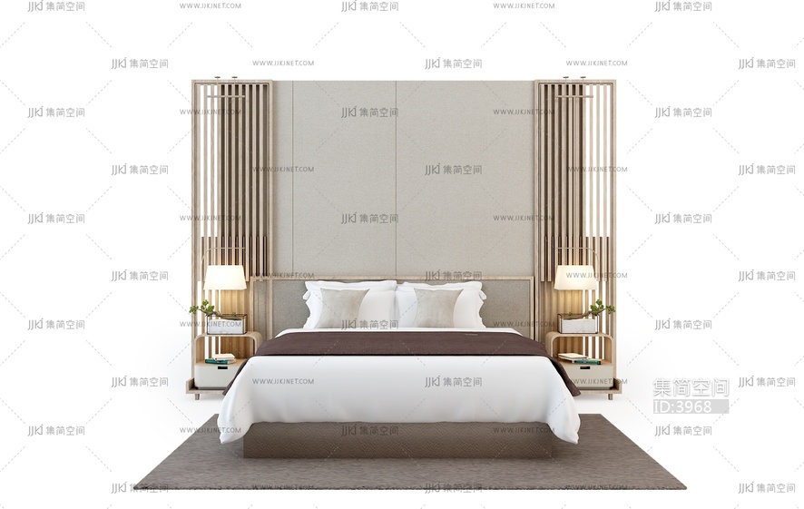 60新中式双人床卧室3d模型下载