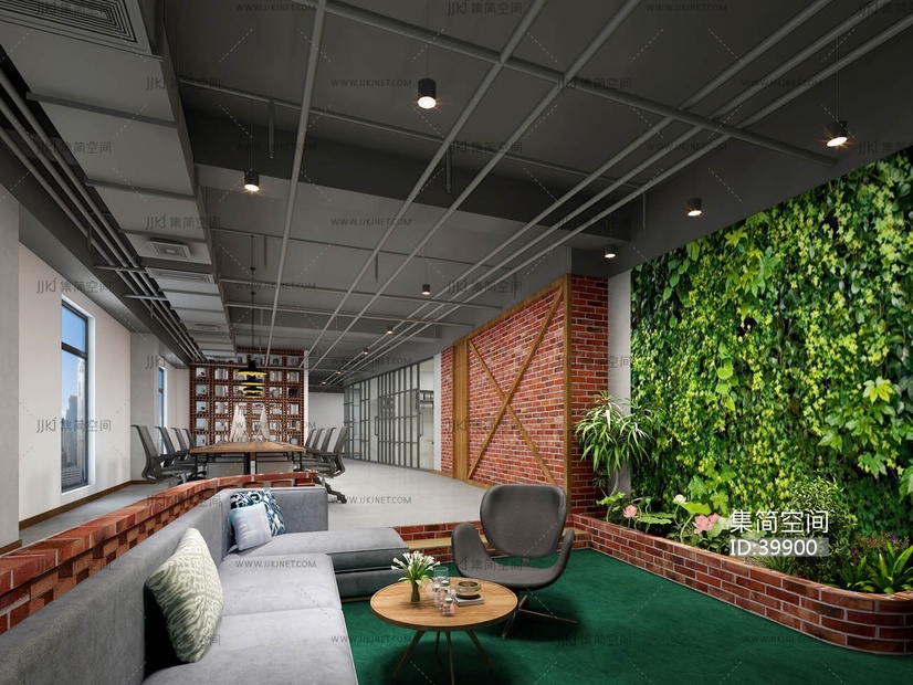 010工业风开敞办公室办公区休闲沙发花池管道 3d模型下载 [模型ID:39900]