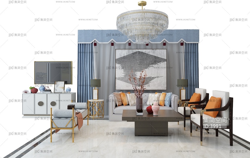 H23简欧新古典沙发组合 3d模型下载 [模型ID:3991]