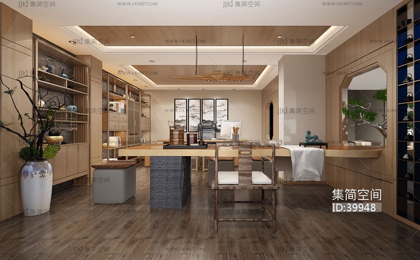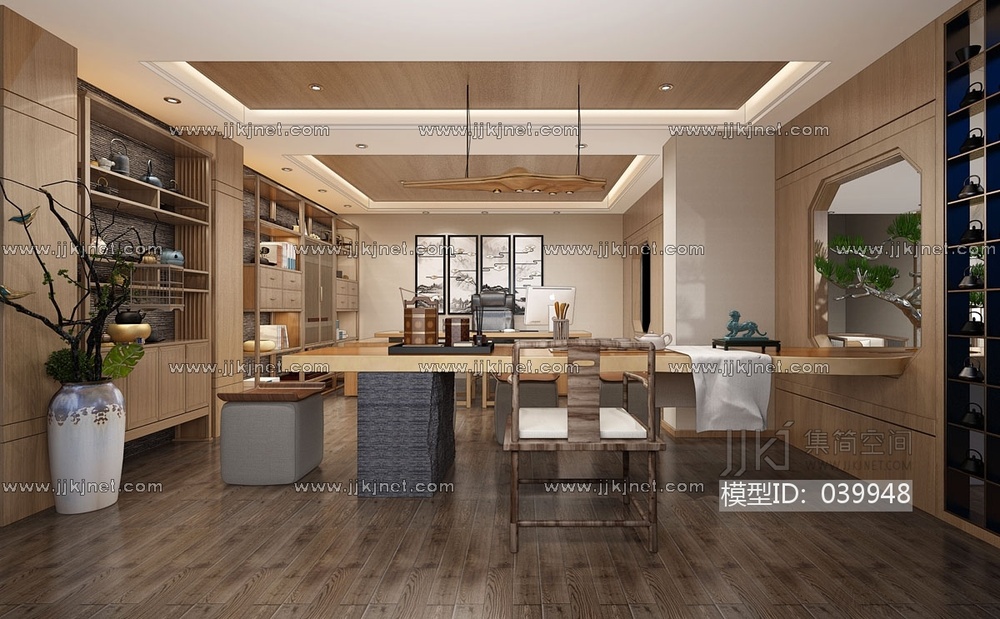 Z10-0505新中式书房茶室茶桌椅茶具陶罐 3d模型下载 [模型ID:39948]