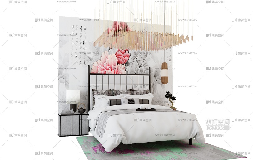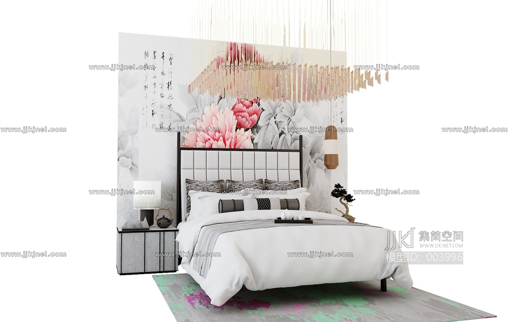 H13现代中式床 3d模型下载 [模型ID:3996]