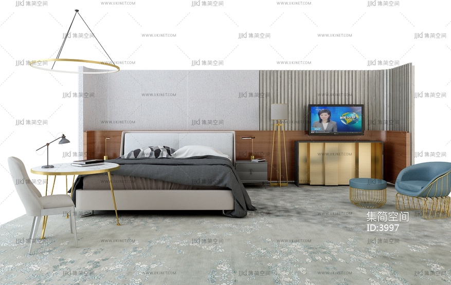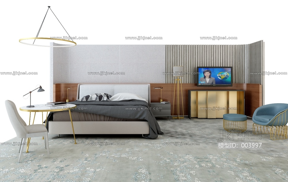 H18客房床电视柜休闲椅 3d模型下载 [模型ID:3997]