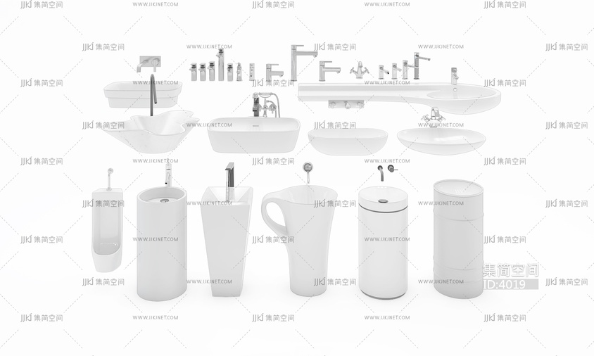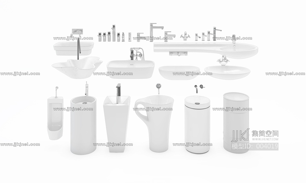 20180607-012洗手台水龙头小便器组合 3d模型下载 [模型ID:4019]