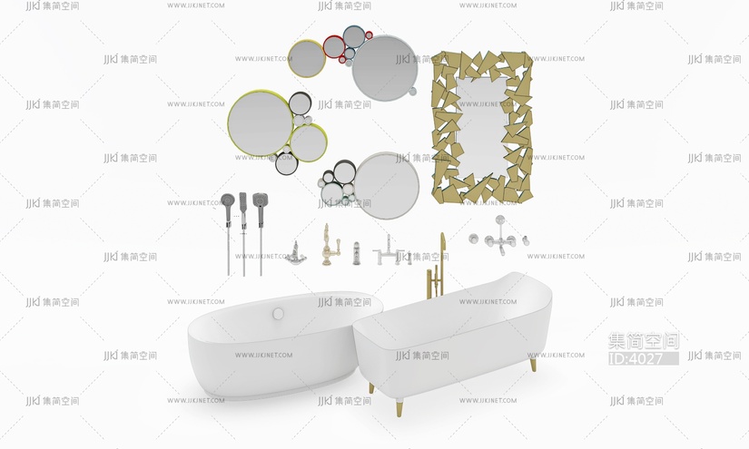 20180607-020浴缸花洒装饰镜组合 3d模型下载 [模型ID:4027]