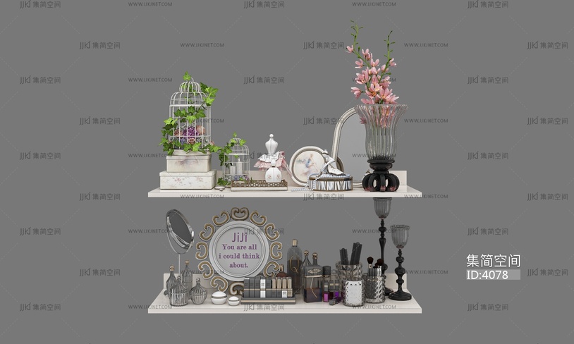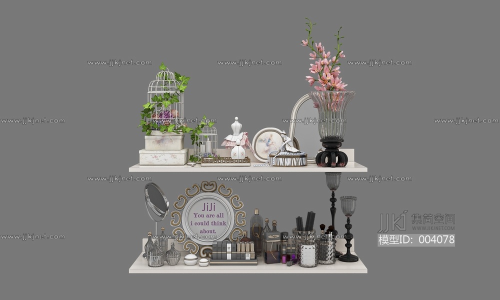 复古法式摆件组合_绿城玫瑰园会所_端景台_花艺_屏风3D模型3d模型下载