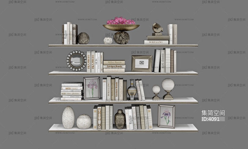 复古法式摆件组合_绿城玫瑰园会所_端景台_花艺_屏风3D模型3d模型下载