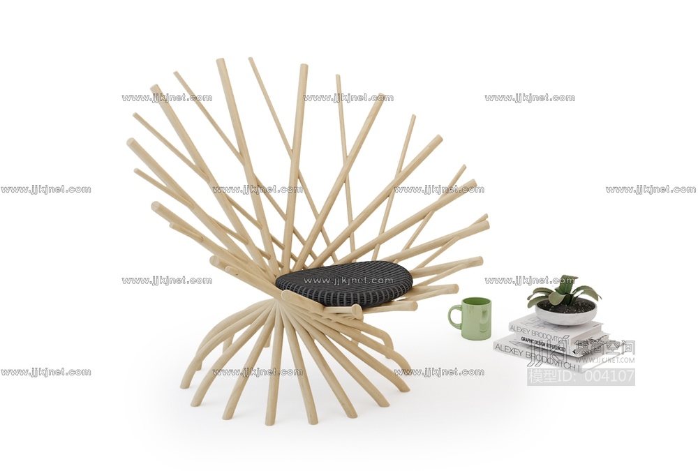ww-01休闲树枝椅子 3d模型下载 [模型ID:4107]