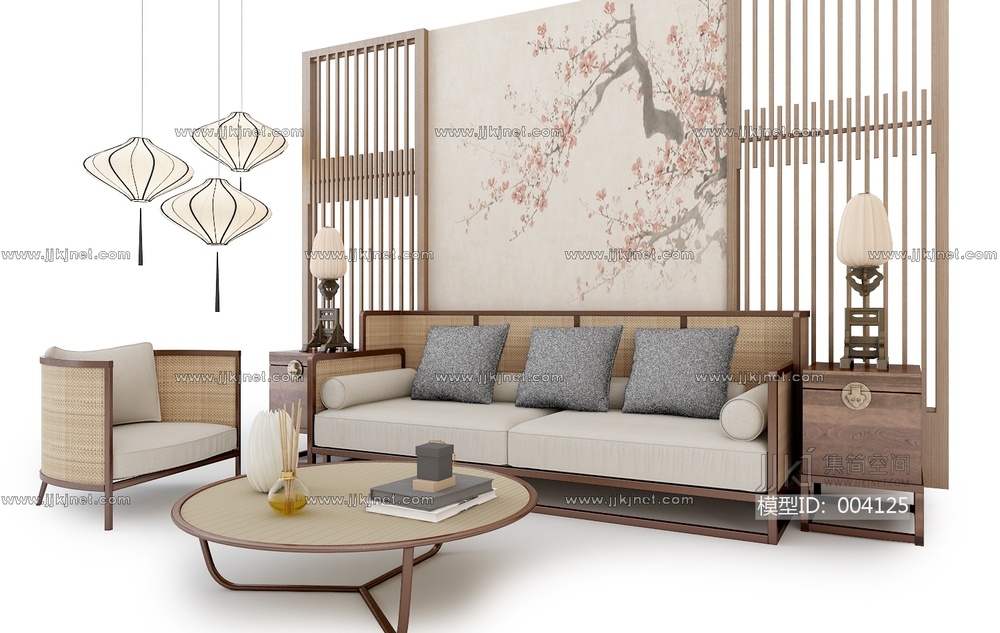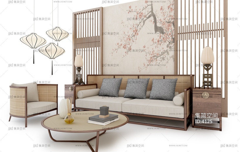H01现代中式沙发组合 3d模型下载 [模型ID:4125]