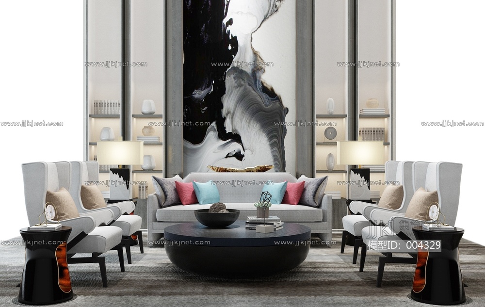 04ww-6-20沙发茶几组合 3d模型下载 [模型ID:4329]