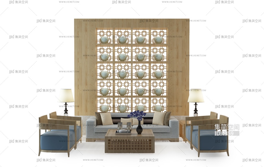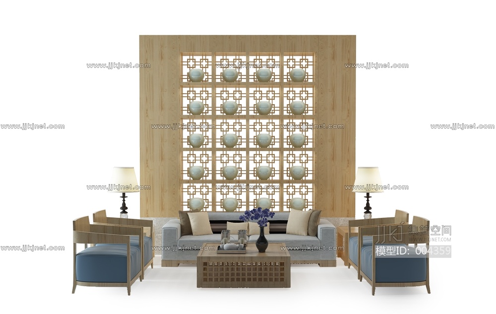 新中式沙发组合 3d模型下载 [模型ID:4359]