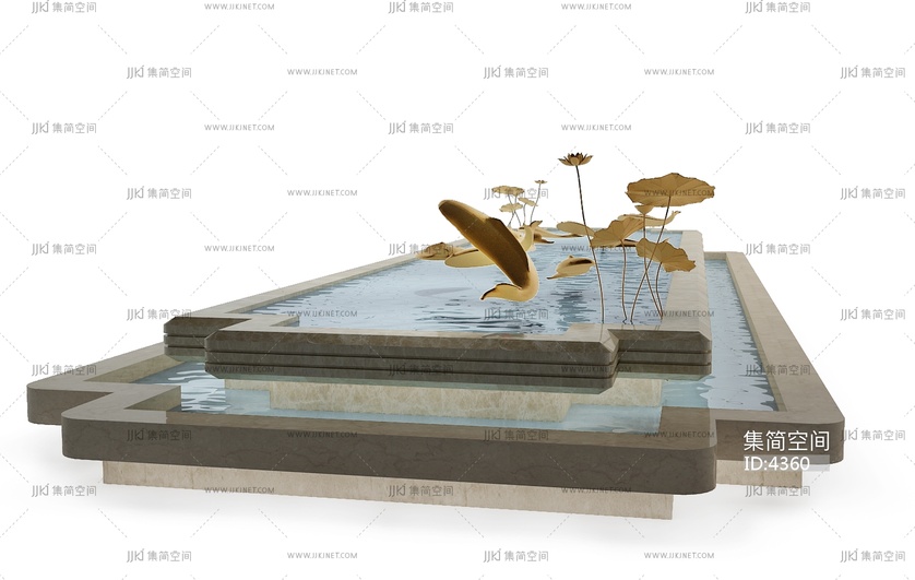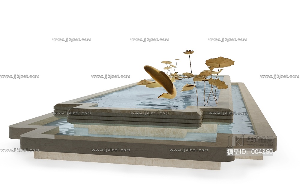 中式鱼、荷花装饰水景 3d模型下载 [模型ID:4360]