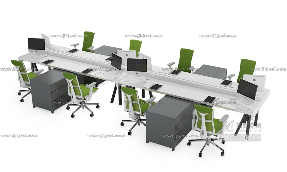现代工位办公桌椅组合 3d模型下载 [模型ID:4369]