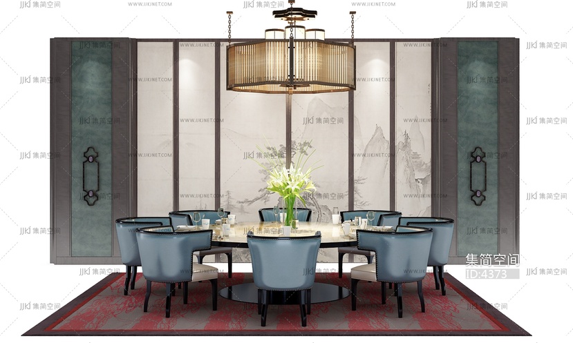 中式餐桌椅组合 3d模型下载 [模型ID:4373]