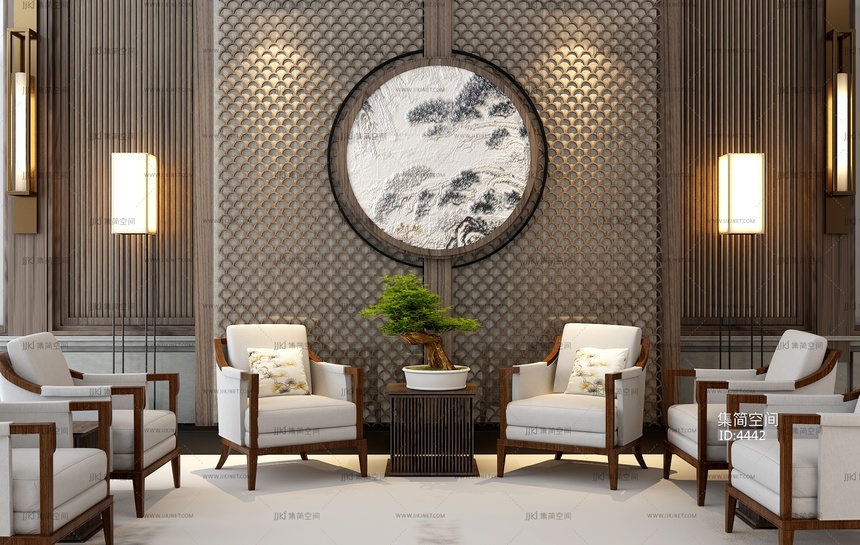 酒店大堂吊灯服务台吊灯3D模型3d模型下载