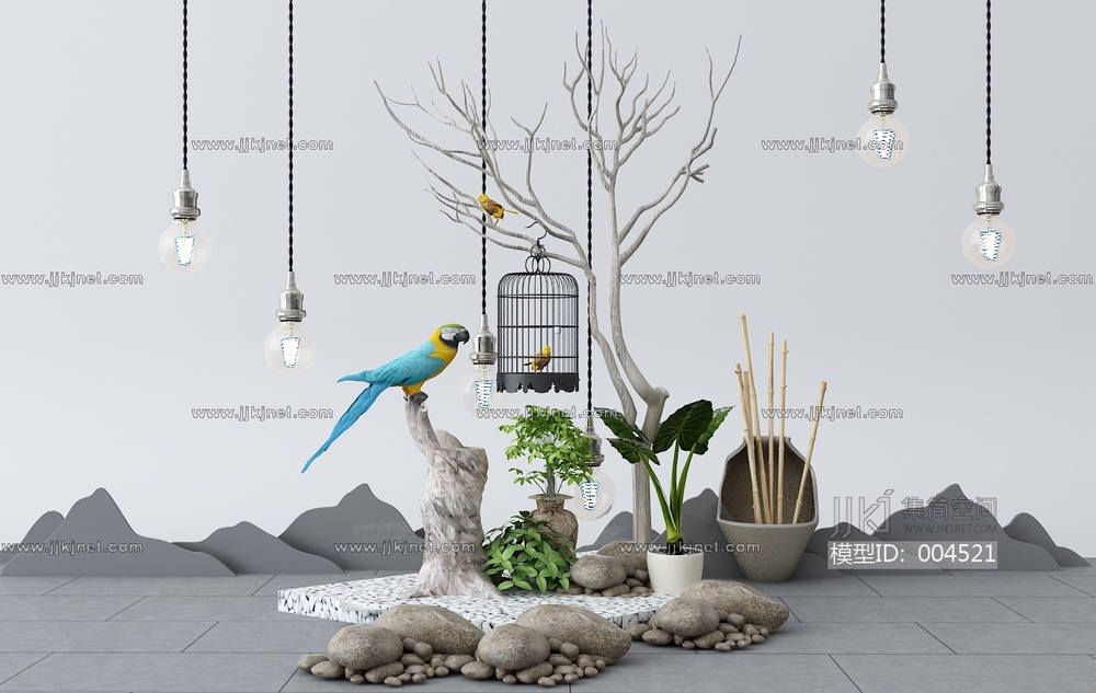 H02干枝鸟笼鹦鹉 3d模型下载 [模型ID:4521]