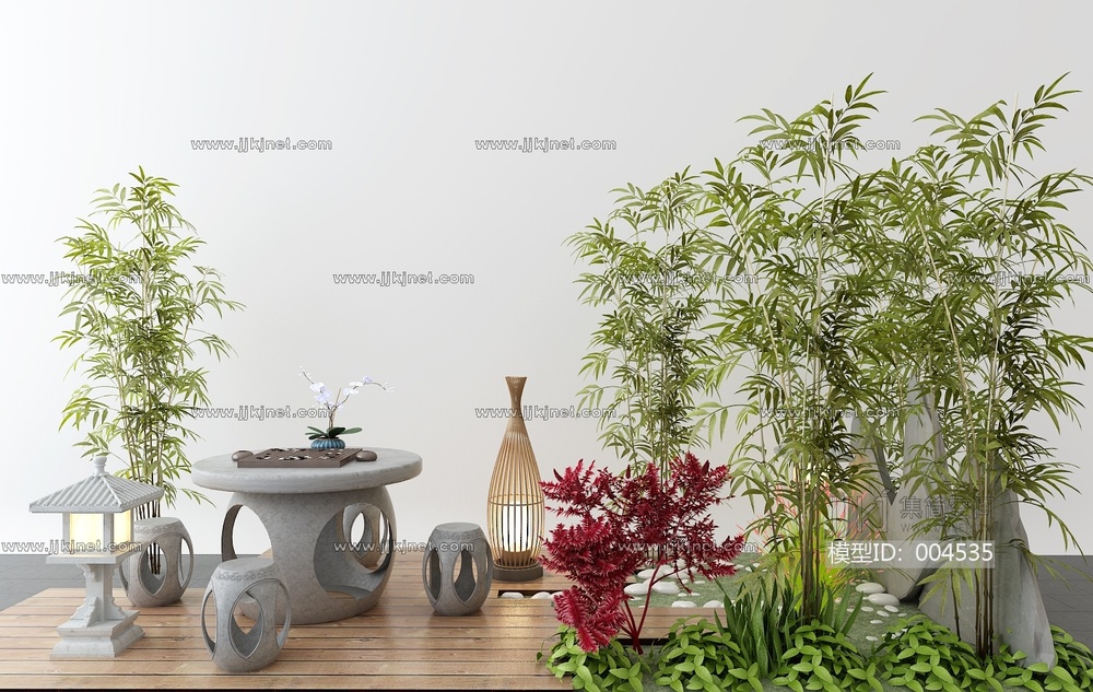 新中式竹子园艺小品 3d模型下载