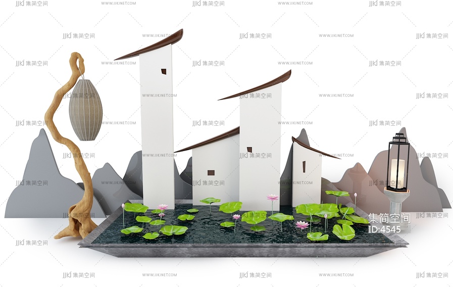 Z17-0615荷花水景园林 3d模型下载 [模型ID:4545]
