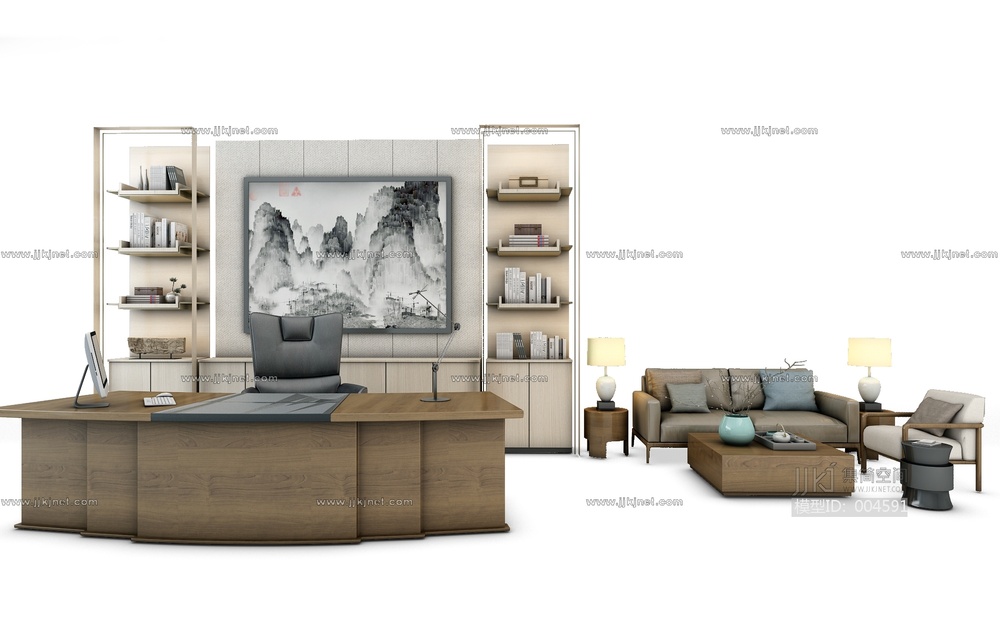 H06-0626老板台书柜沙发组合 3d模型下载 [模型ID:4591]