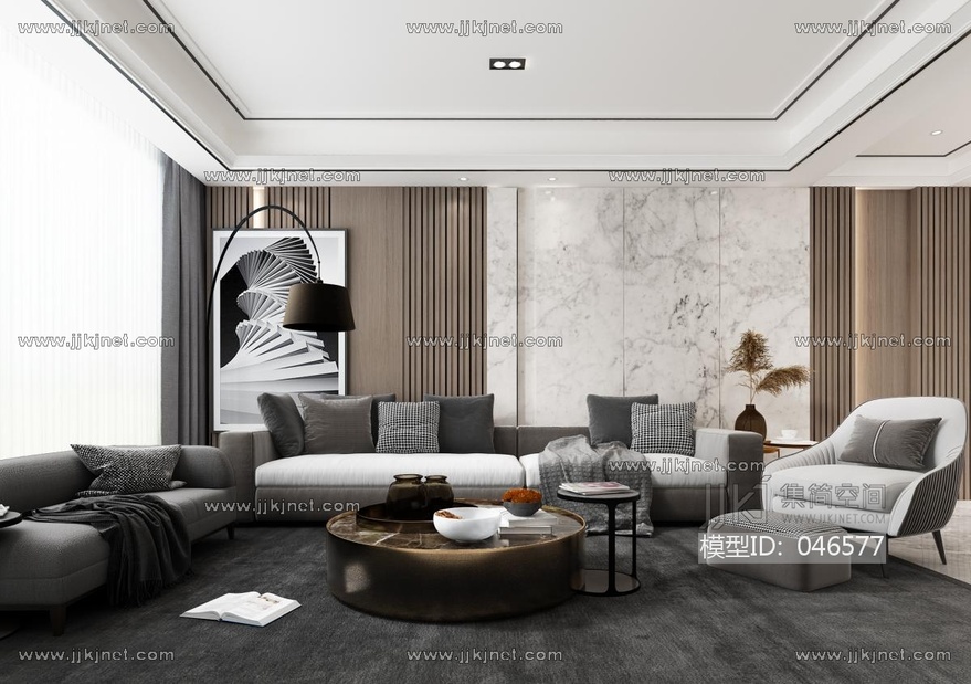 现代客厅 3d模型 (1)3d模型下载