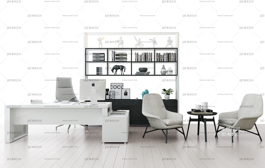 Z01-0626老板台沙发书柜组合 3d模型下载 [模型ID:4658]