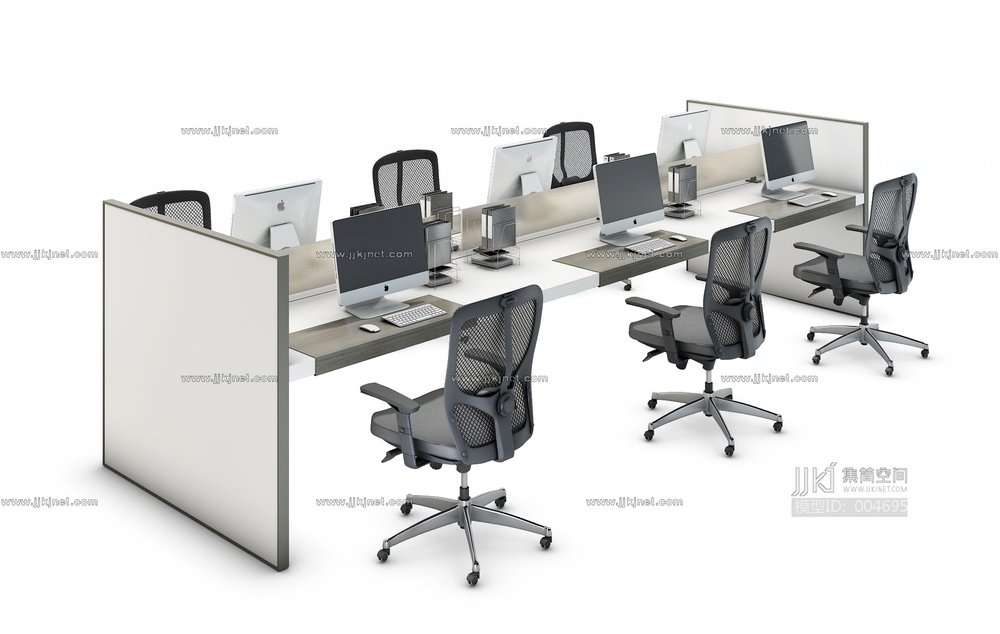 现代工位办公桌,员工工位苹果电脑,办公椅3d模型下载