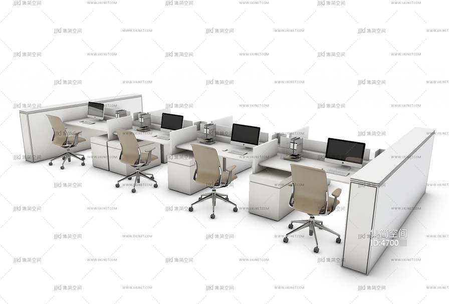 现代办公桌,员工工位,白板办公椅3d模型下载
