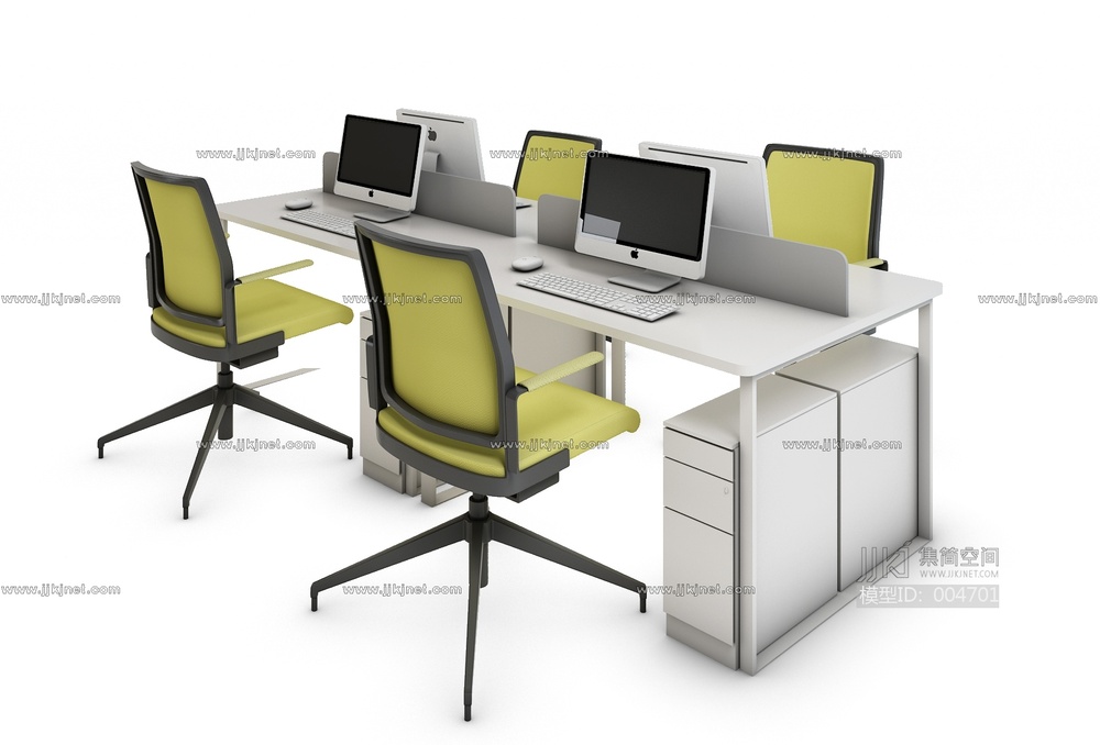 现代文员办公桌椅组合_白领员工办公桌办公椅_办公用品3D模型3d模型下载
