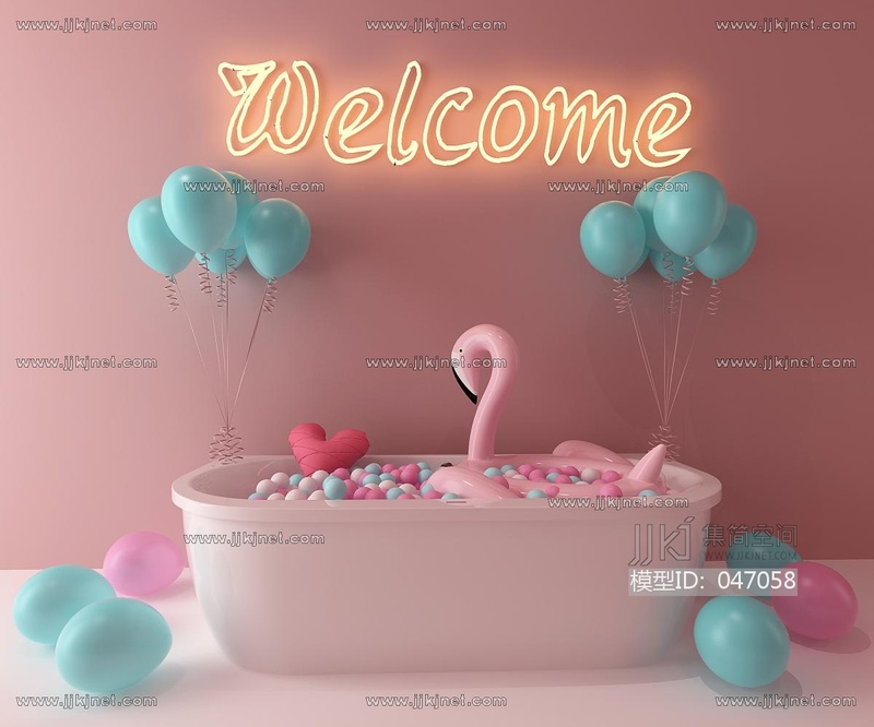 H06-0627北欧唯美少女心网红池浴缸气球霓虹灯 3d模型下载 [模型ID:47058]