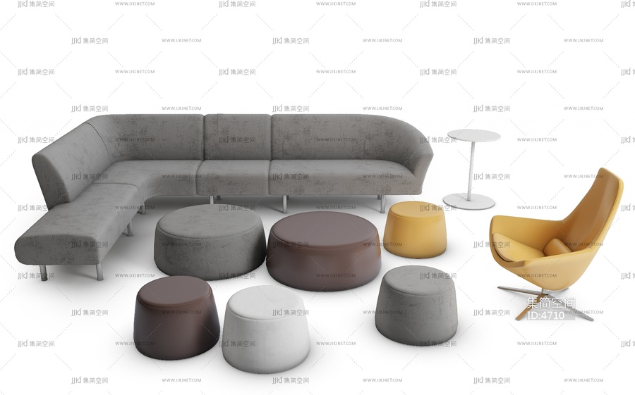 H07-0630现代沙发组合 3d模型下载 [模型ID:4710]