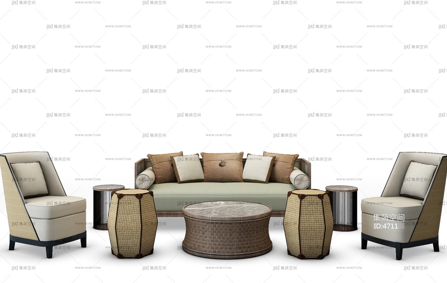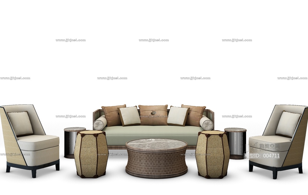 Z01-0630现代中式沙发组合墩子 3d模型下载 [模型ID:4711]