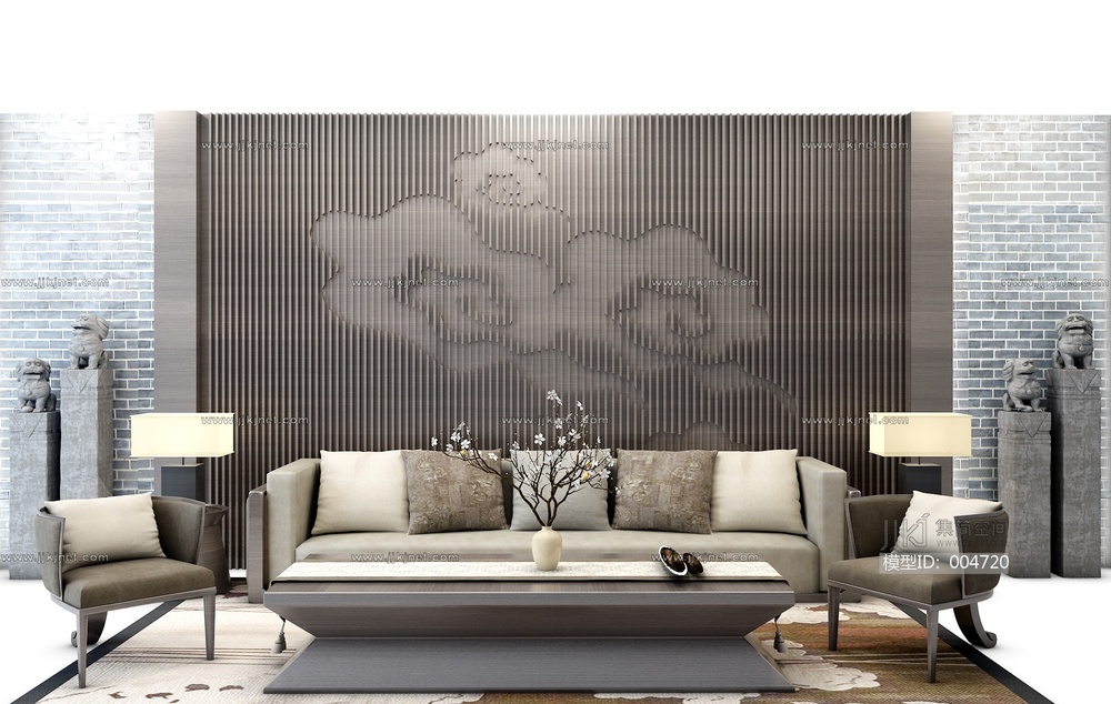 Z10-0630现代中式沙发茶几组合 3d模型下载 [模型ID:4720]