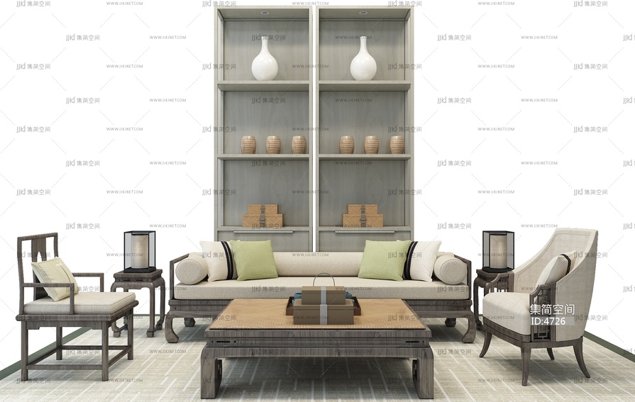 Z16-0630现代中式沙发茶几组合 3d模型下载 [模型ID:4726]