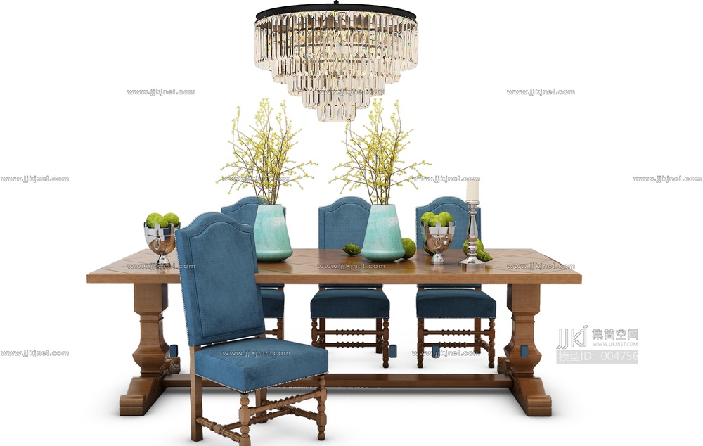 Z09-0703欧式美式餐桌椅 3d模型下载 [模型ID:4756]