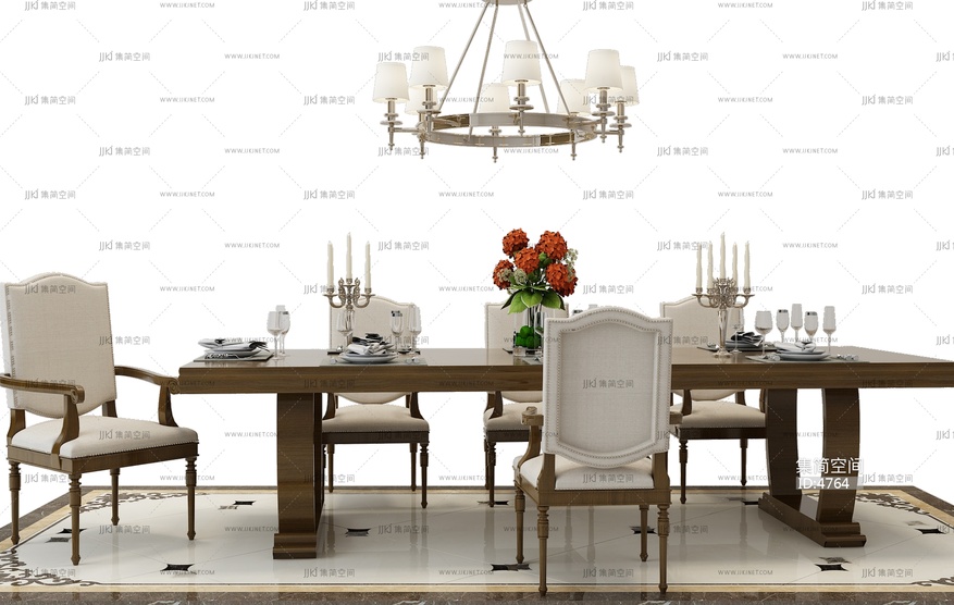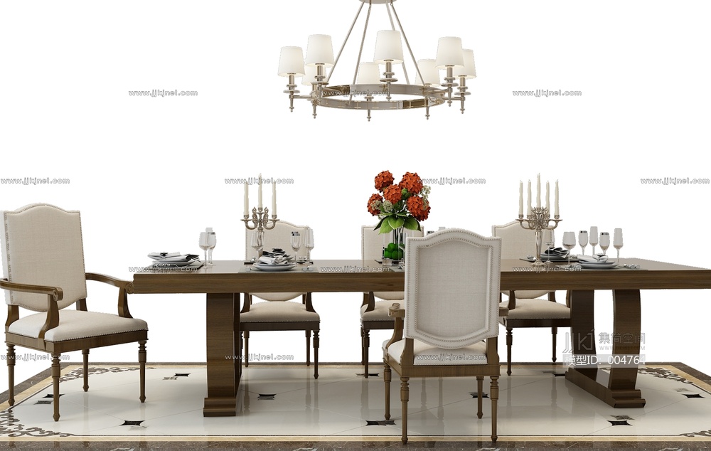 Z18-0703欧式美式餐桌椅组合 3d模型下载 [模型ID:4764]