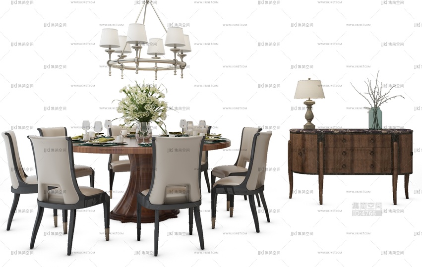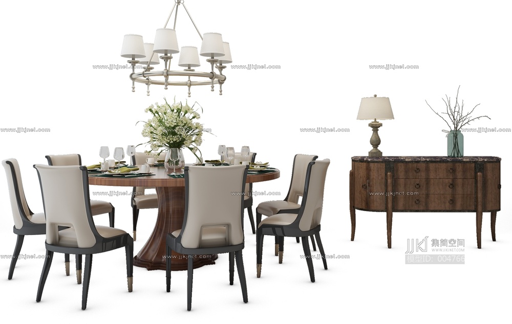 Z22-0703圆桌餐桌椅组合 3d模型下载 [模型ID:4766]