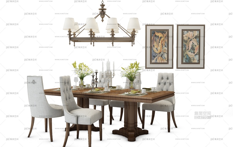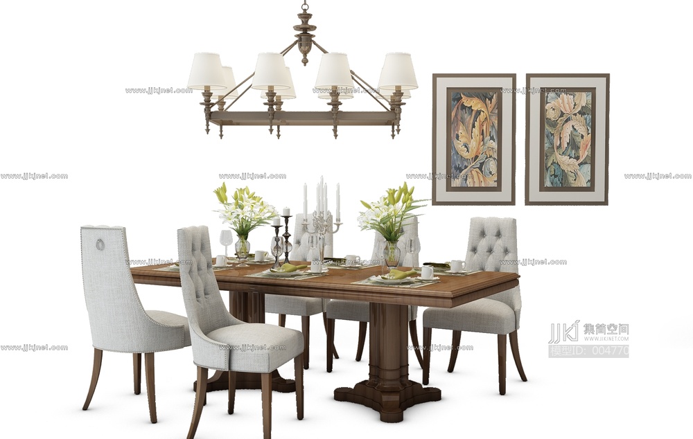 Z25-0703欧式美式餐桌椅组合 3d模型下载 [模型ID:4770]