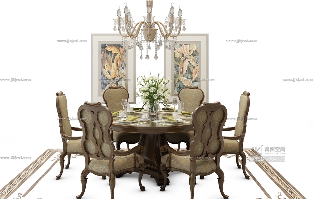 Z27-0703欧式餐桌椅组合圆桌 3d模型下载 [模型ID:4772]